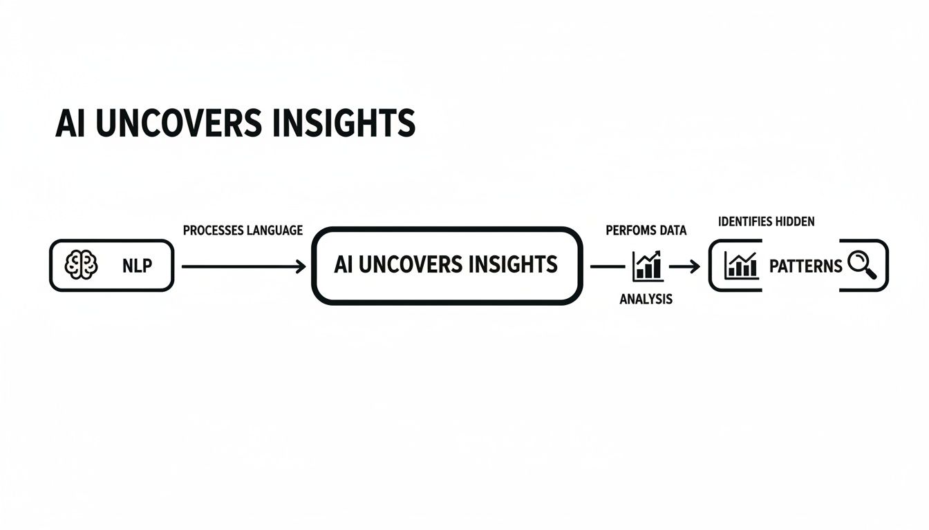 The flowchart shows how AI applies Natural Language Processing (NLP) and pattern detection to systematically pull out the important signals from the noise of customer feedback.