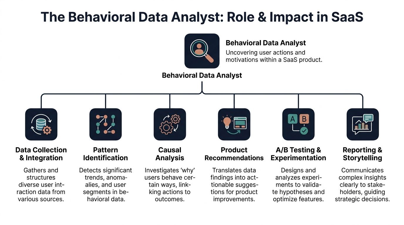 The role is broader than dashboard maintenance and narrower than a generic “data person.” In SaaS, a behavioral data analyst owns the path from raw interaction data to a product or growth decision.
