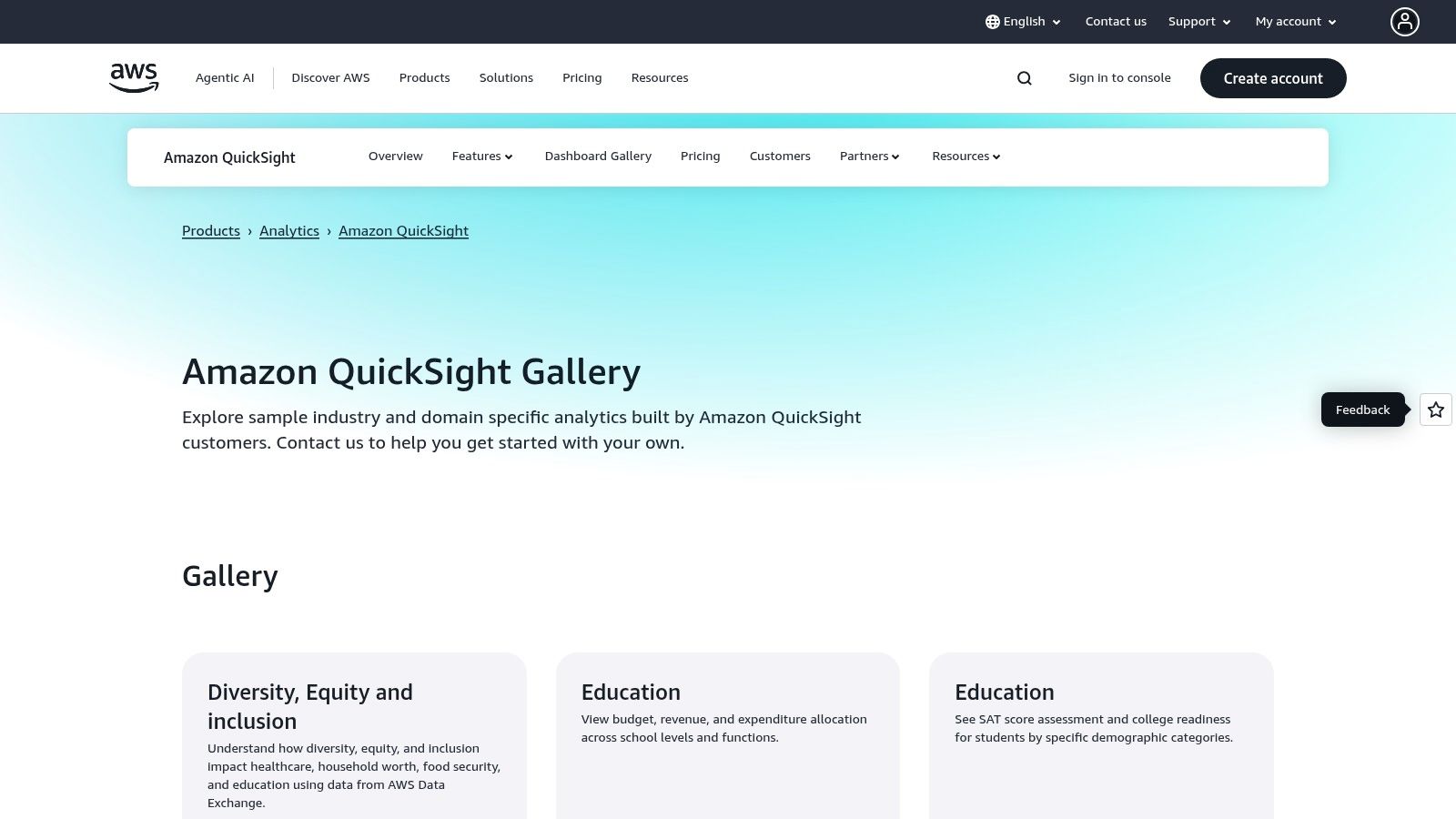 | Accessibility | The gallery is free to view. Using QuickSight requires an AWS account, with pricing based on user roles and session capacity. |