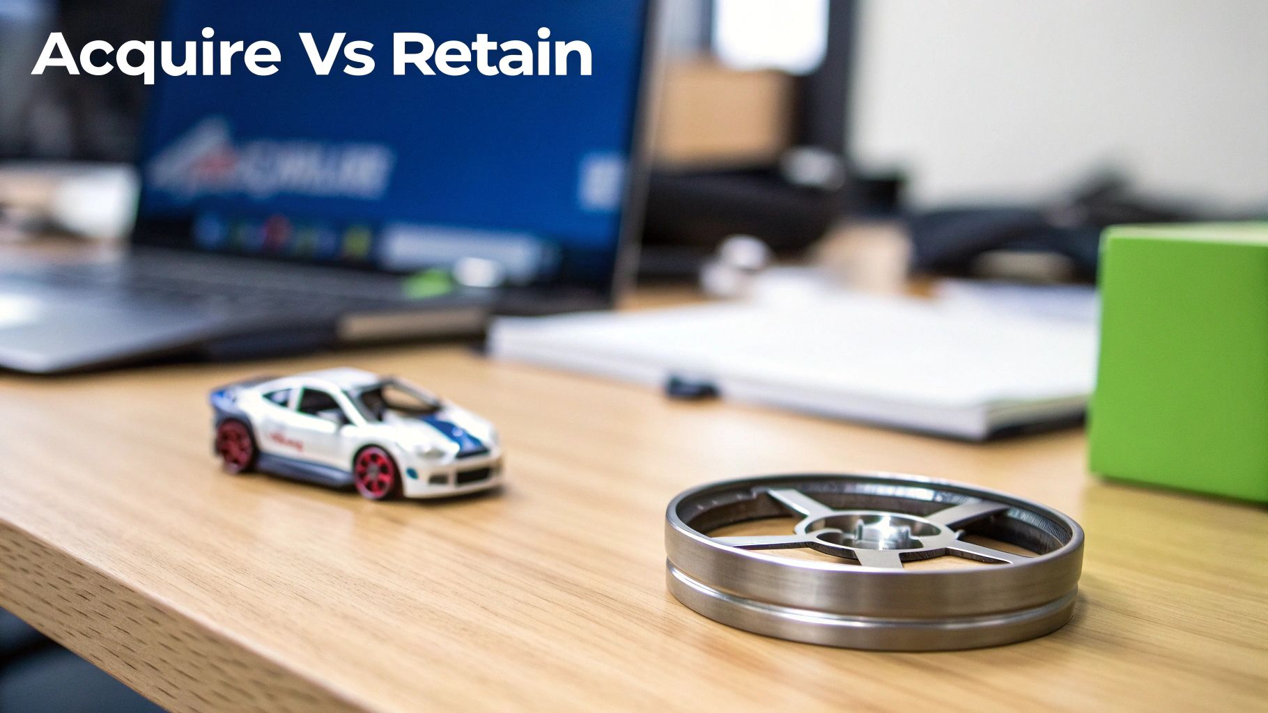 Think of acquisition as the gas pedal—it's how you accelerate and find new markets. Retention, on the other hand, is the powerful flywheel that keeps your business spinning, generating momentum and driving long-term profit.