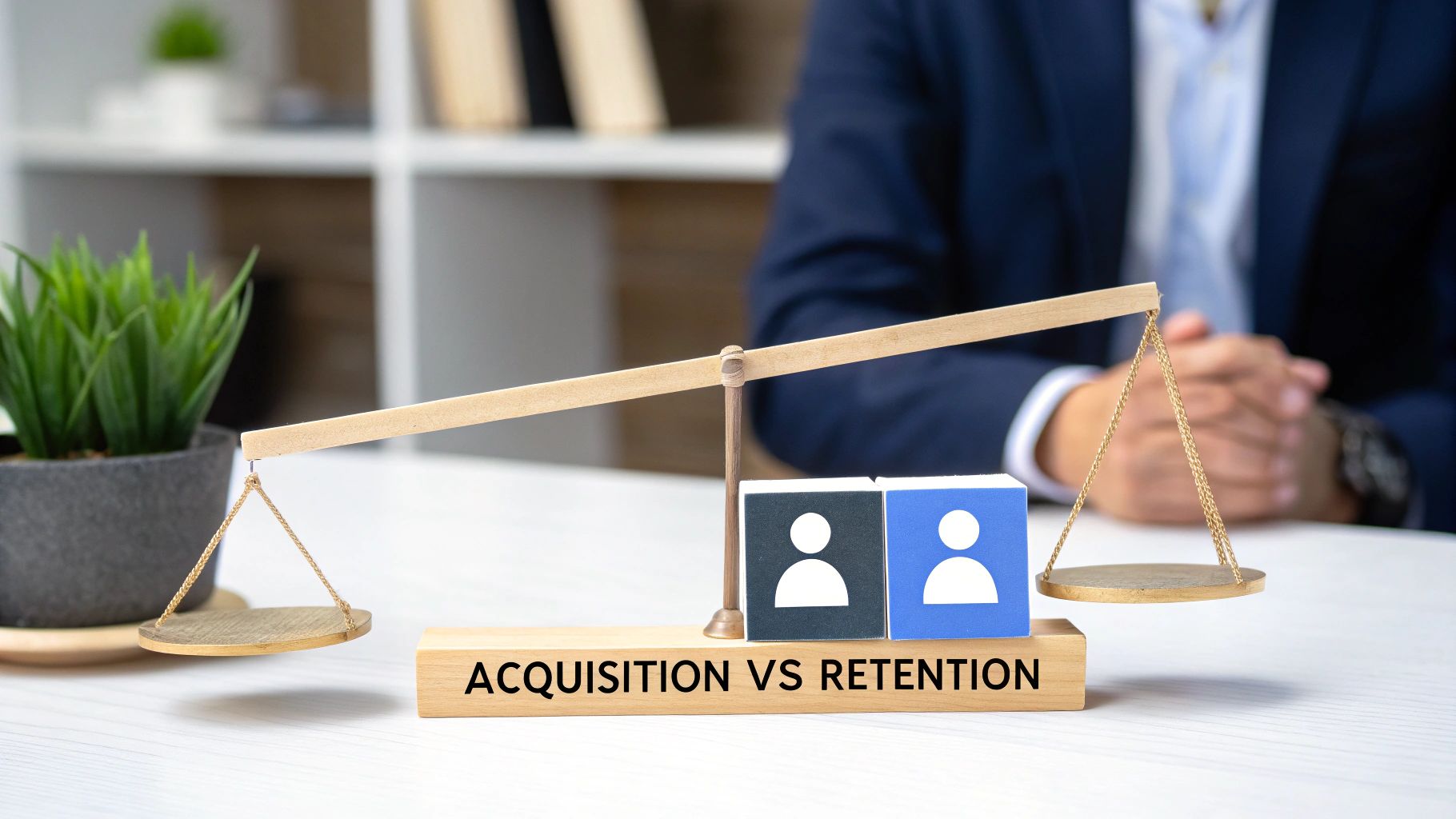 At its heart, the difference between customer acquisition and customer retention is straightforward. Acquisition is all about bringing new people in the door, while retention is about convincing the ones you have to stick around. True, sustainable growth in SaaS isn't a matter of picking one—it's about finding the right blend of both to build a profitable, resilient business.