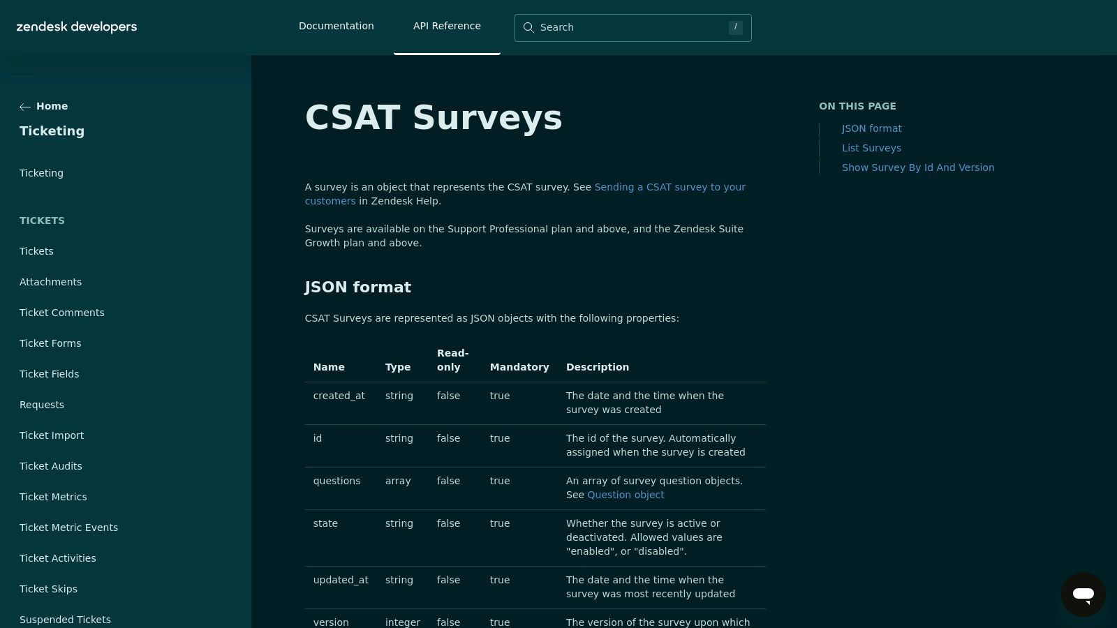 - Website: https://developer.zendesk.com/api-reference/ticketing/ticket-management/csat_surveys/