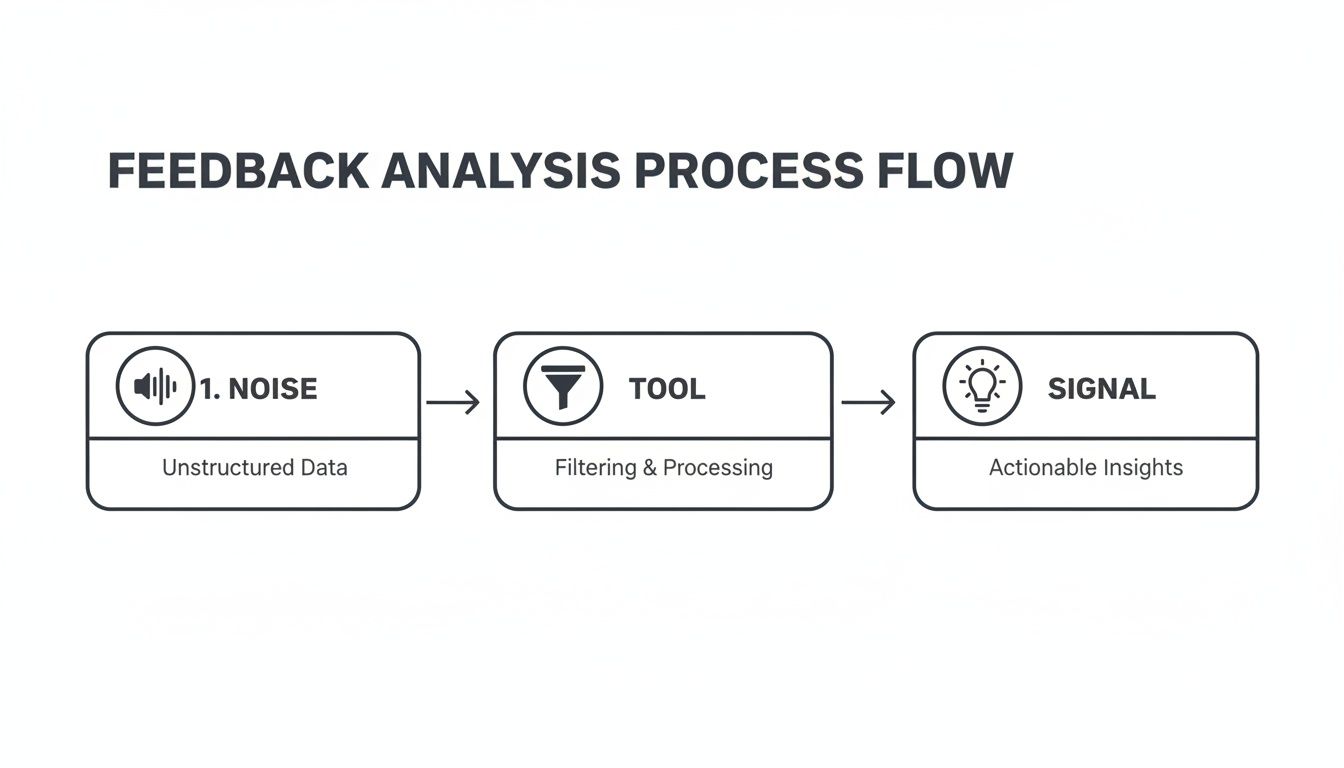 Think of a modern customer feedback analysis tool as your company's central intelligence hub. It’s designed to do one thing exceptionally well: listen to the thousands of conversations happening across your customer base and turn all that noise into clear, actionable signals. This isn’t magic—it’s a methodical process of gathering data, making sense of it, and connecting it to real business outcomes.