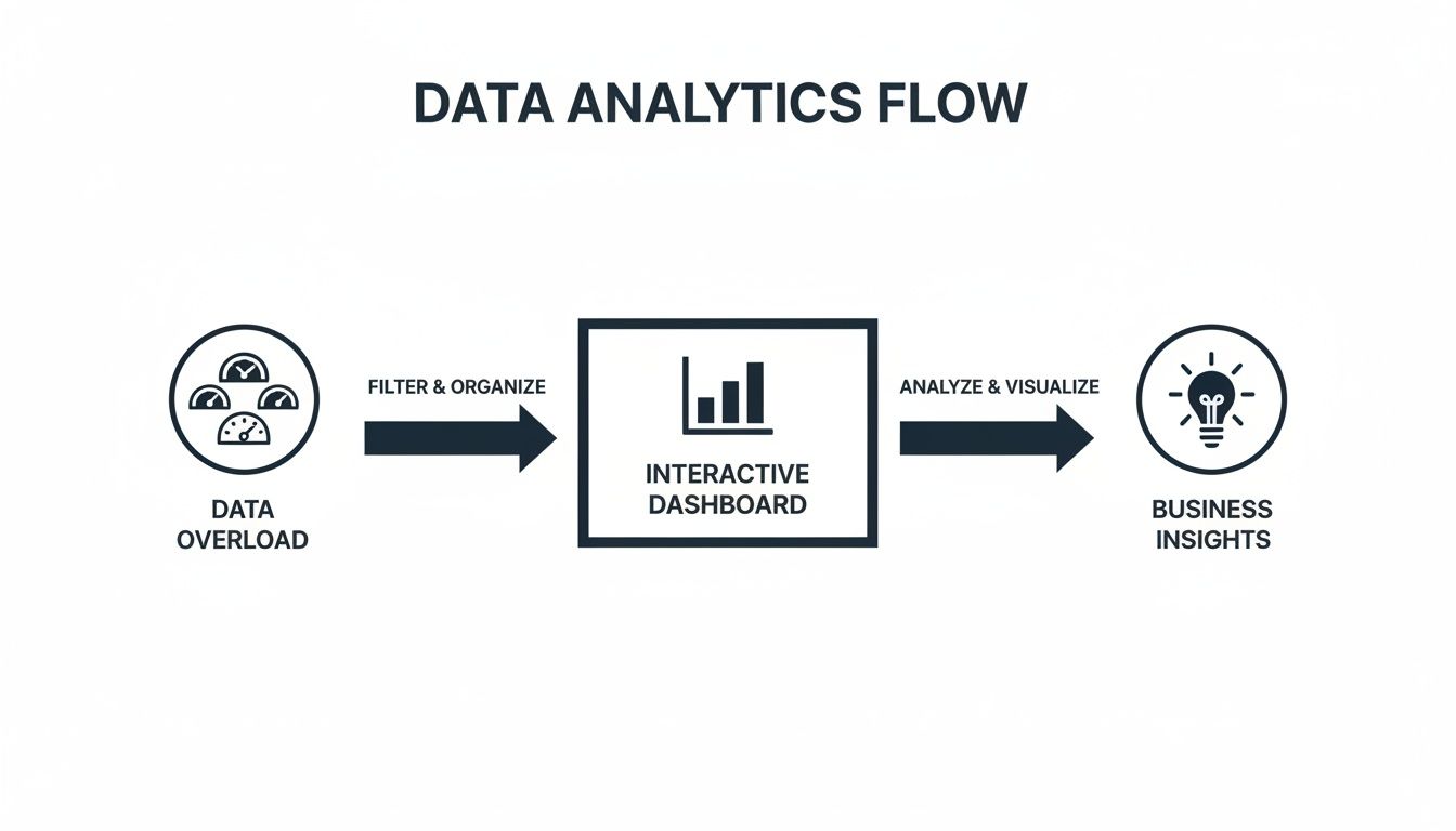 This guide is here to help you build that mission control center. We're talking about a powerful data analytics dashboard that cuts right through the complexity. It’s about getting beyond basic charts to create a strategic asset that turns raw numbers into a clear, compelling story about your business. A great dashboard doesn't just show you what's happening; it tells you why it matters.