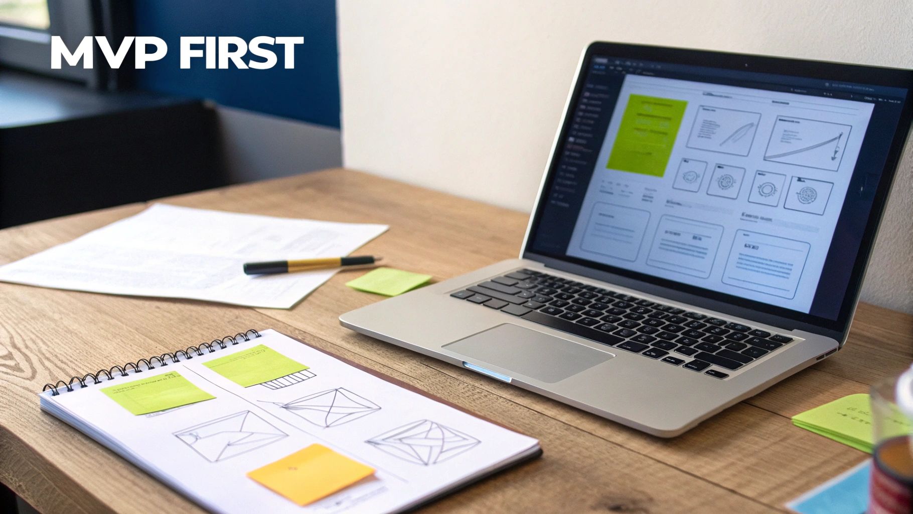 The goal is to get a functional product into the hands of early adopters as quickly as possible to gather data and insights. Famously, Dropbox started with a simple video demonstrating its file-syncing concept before writing a single line of complex code. This MVP validated demand, allowing them to secure funding and build the full product with confidence that they were solving a real pain point. Similarly, Airbnb's initial site was just a basic webpage with photos of the founders' own apartment.