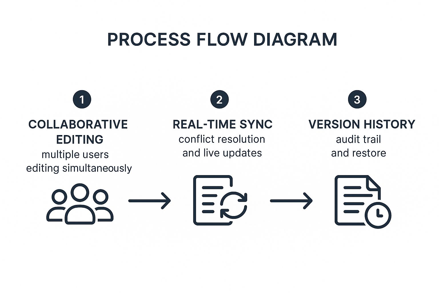 This infographic illustrates the core process flow required to deliver a seamless collaborative editing experience.