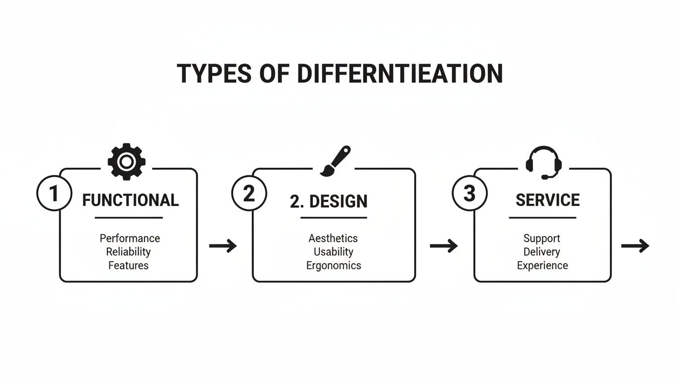 This guide will break down product differentiation into real, actionable steps. We’ll dive into the different types, show you how to uncover your own unique angle, and give you a framework for building a product that doesn't just compete—it wins.