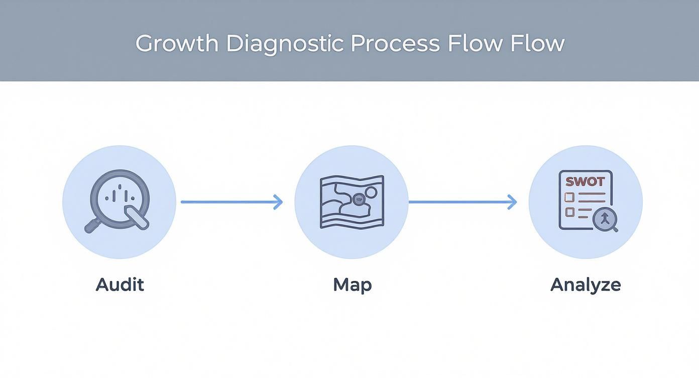 You can’t build a solid growth framework on a foundation of guesswork. Before you can even think about where you’re going, you need a brutally honest, unfiltered look at where you are right now. This diagnostic phase is the bedrock of your entire strategy. It’s about getting past the vanity metrics to uncover the real story behind your numbers.