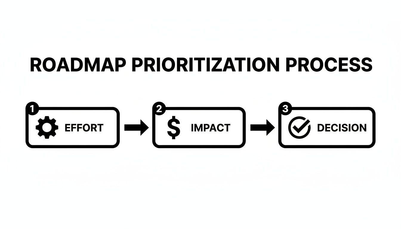 The goal isn't just to pick the "best" ideas. It's about making objective trade-offs that maximize financial impact. Do you tackle a small UI tweak requested by dozens of low-MRR users, or do you build a complex integration demanded by three enterprise prospects representing $250k in potential new ARR? The answer lies in a smarter model that weighs development effort against direct revenue.