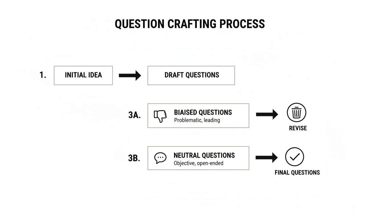 The flowchart below shows the subtle but critical shift from crafting biased questions that lead users, to neutral ones that uncover genuine insights.