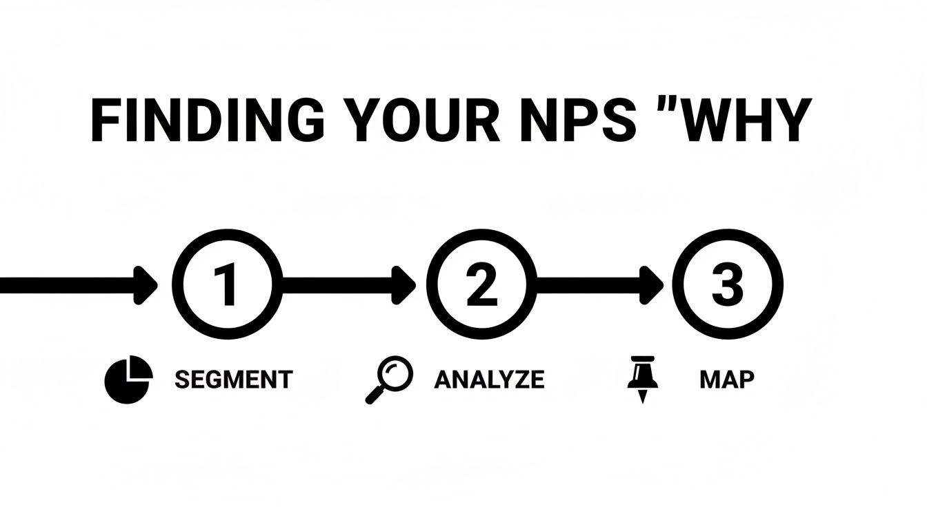 Your Net Promoter Score is a starting point, not a conclusion. A score of 45 doesn't tell you why your customers are happy, just as a score of -10 doesn't explain what’s driving them away. To make that number mean something—and more importantly, to improve it—you have to put on your detective hat and dig into the root causes.