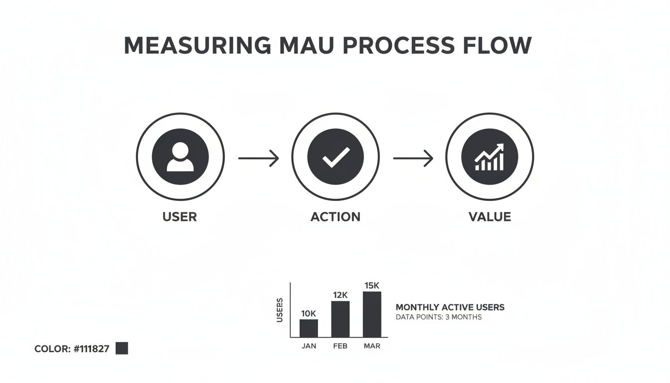 On the surface, calculating your Monthly Active Users seems simple enough. The basic formula is just counting the number of unique users who take a meaningful action within a 30-day period. But as anyone who's lived in the data knows, the real challenge is nailing down what "unique" and "active" actually mean for your specific product.