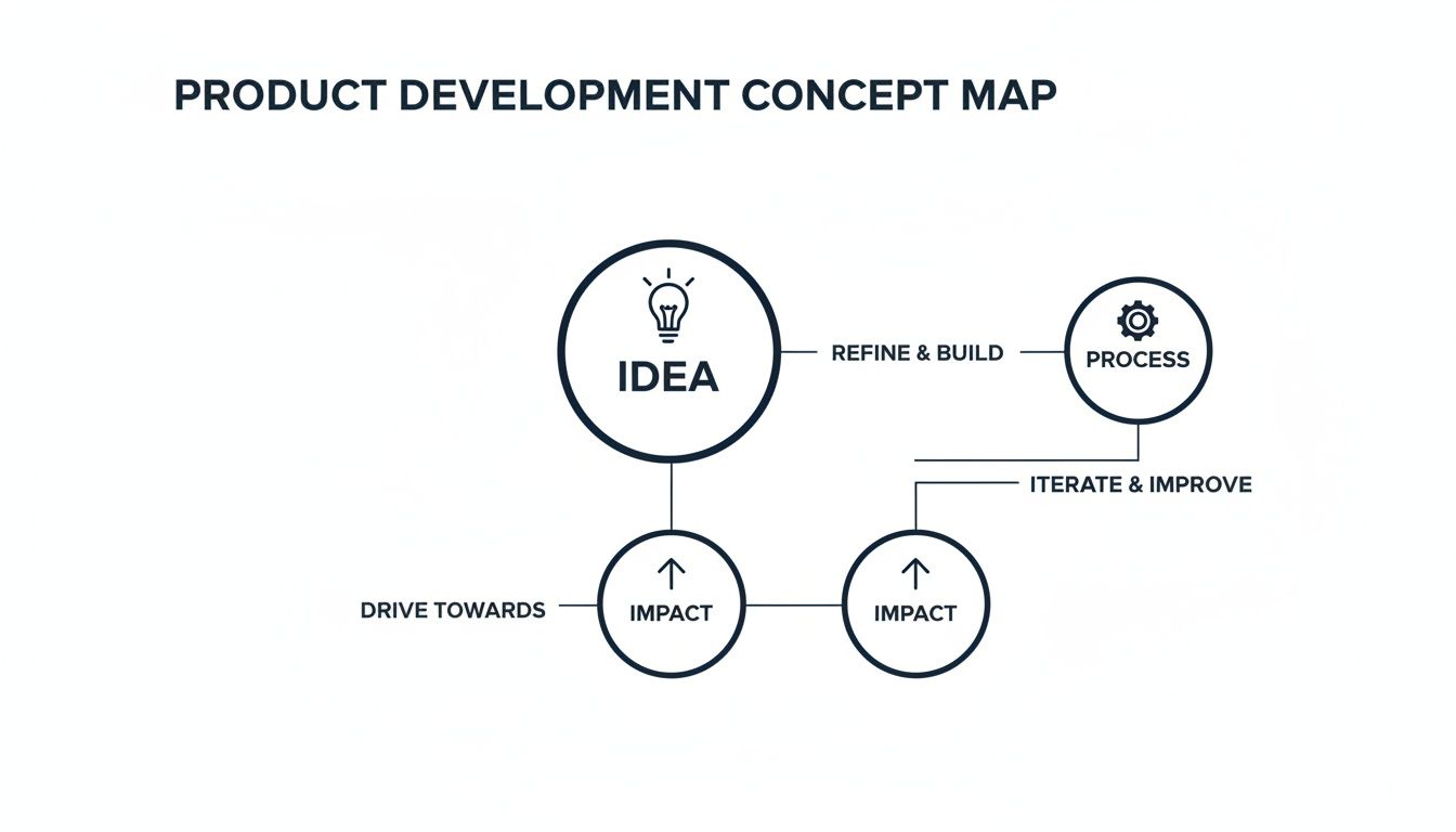 Getting a product from a simple idea to a market success isn't magic; it's a journey. Think of the phases of product development as your roadmap—a proven blueprint that guides your team from a rough concept to a tangible solution that truly helps your customers. This structure is what separates the products that thrive from those that just fade away.