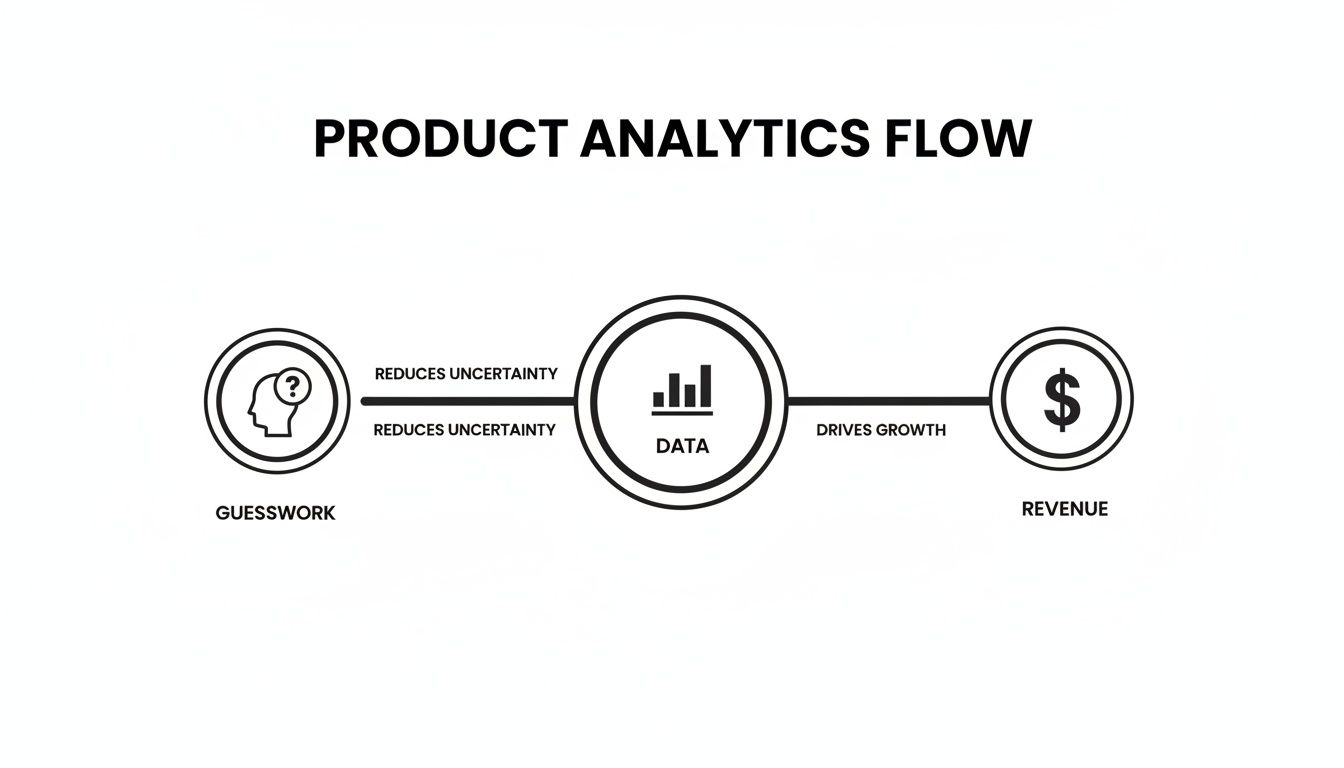 This is where product analytics comes in. It replaces that guesswork with hard evidence. It’s the tool that shows you precisely where users get excited, where they get stuck, and which features they keep coming back to. This shifts the entire conversation from "I think we should..." to "The data shows us that..."