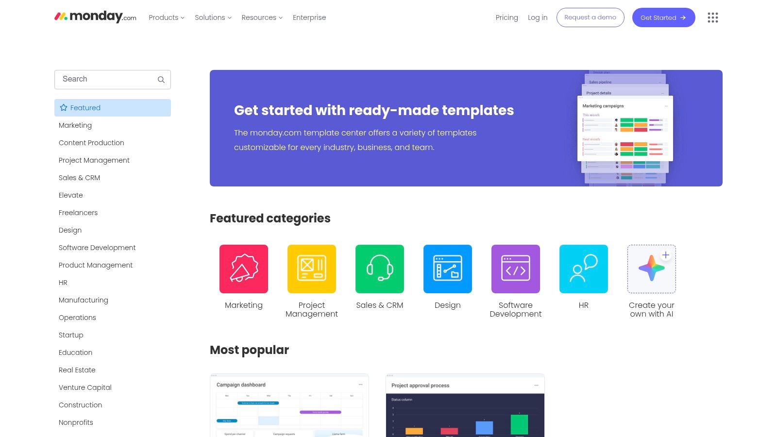For teams that prioritize visual workflow management and stakeholder communication, monday.com’s Template Center provides a powerful, out-of-the-box solution. It goes beyond simple documents by offering interactive, plug-and-play boards designed for specific product management tasks like roadmapping, sprint planning, and backlog grooming. These templates come pre-configured with relevant columns, automation rules, and dashboard widgets, allowing teams to get started immediately with minimal setup.