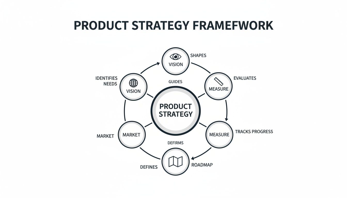 Ultimately, a product strategy framework is the scaffolding that supports sustainable growth. It’s what ensures your team isn't just building features, but building the right features that solve the right problems for the right customers. If you want to dive deeper, you can explore our complete guide to building a winning product strategy. It’s the foundational step that turns an ambitious vision into a market-defining product.