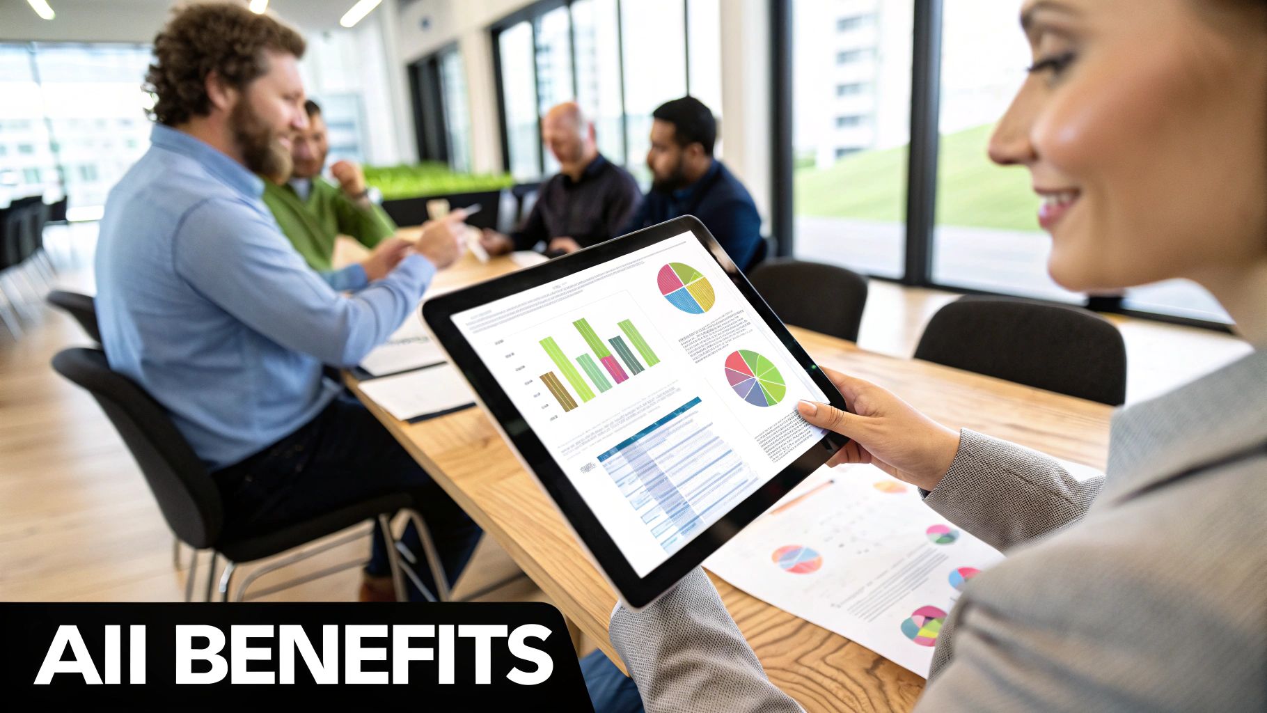 The magic of SaaS artificial intelligence isn't just about fancy algorithms or complex code; it’s about the tangible results it brings to a business. It’s the bridge between raw data and a stronger bottom line. These benefits typically cluster around three core areas that directly boost your efficiency, sharpen your strategy, and deepen customer relationships.