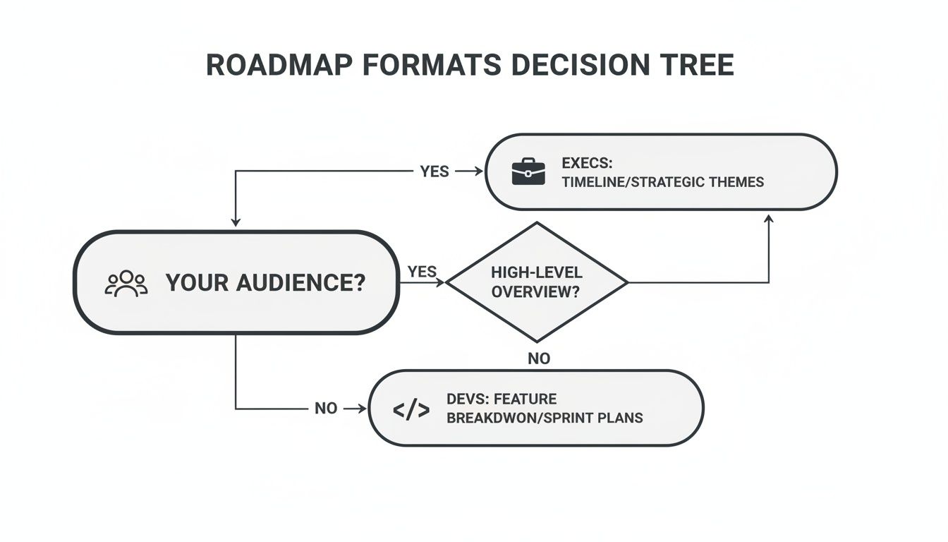 This decision tree helps visualize how your primary audience should guide your format choice, whether you're presenting to executives or briefing developers.