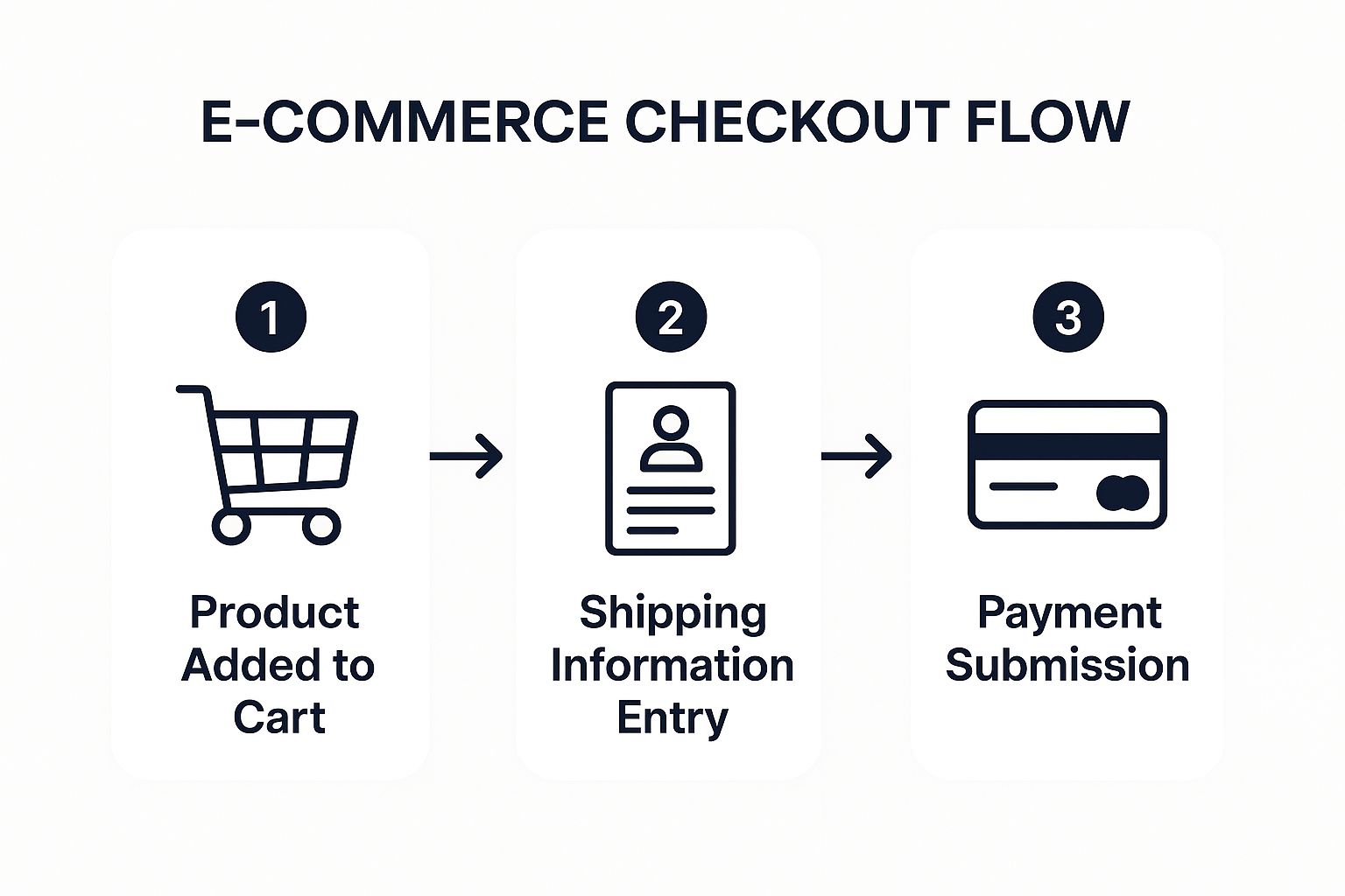 This infographic illustrates the fundamental three-stage journey a user takes in a typical e-commerce checkout.