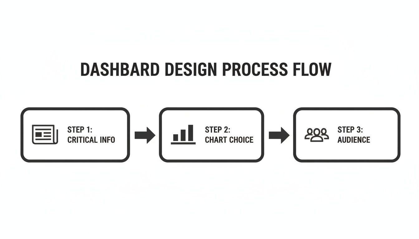 This simple flowchart breaks down the foundational steps to designing a dashboard that brings critical insights to the surface, fast.