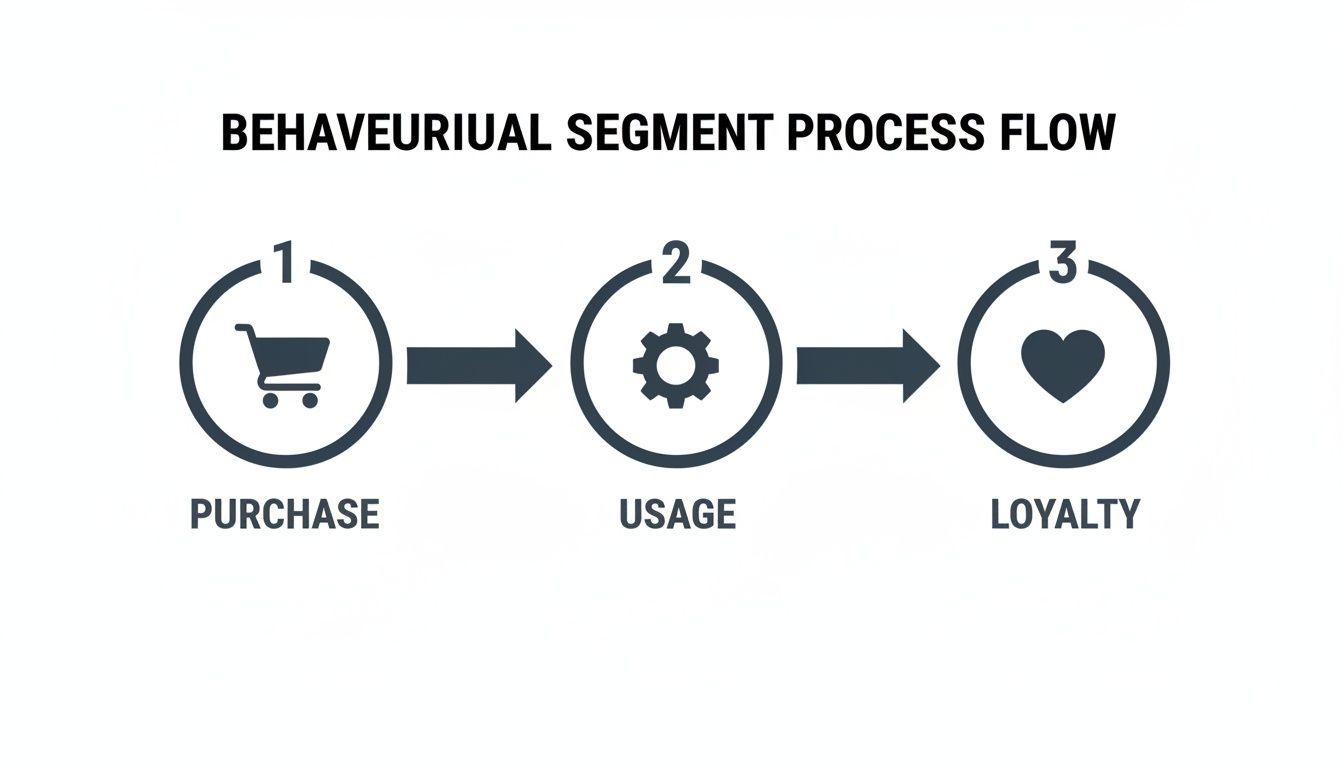Behavioural segmentation is all about what your users do. We're talking about concrete, measurable actions like how often they log in, which features they use every day, or when they last upgraded their plan. It's direct, objective, and incredibly powerful for product teams.