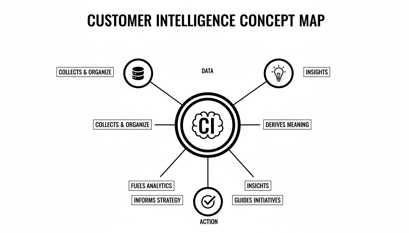 So many companies today are what you might call "data-rich but wisdom-poor." They collect mountains of information but can't seem to connect the dots in a way that actually helps the business. This is the exact problem customer intelligence was built to solve. It’s not just another software tool; it's a complete business strategy that weaves disconnected data into a single, unified view of your customer relationships.