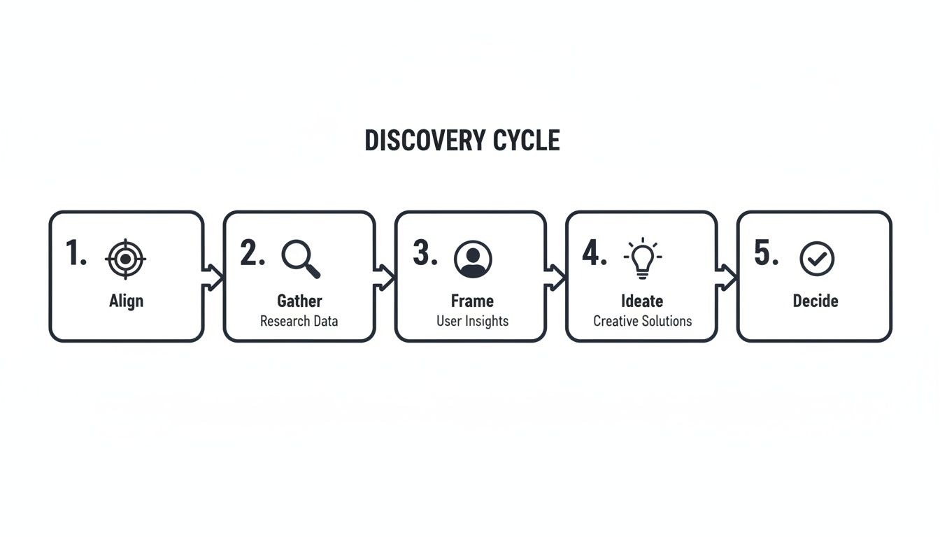 Alright, let's move from theory to action. Understanding product discovery is one thing, but running a cycle yourself is where the real learning happens. This isn't a massive, one-off project; think of it as a repeatable, structured loop that helps you learn fast and take the guesswork out of your decisions. You don’t need a huge team or a massive budget to get started—just a clear process and a genuine curiosity to listen.