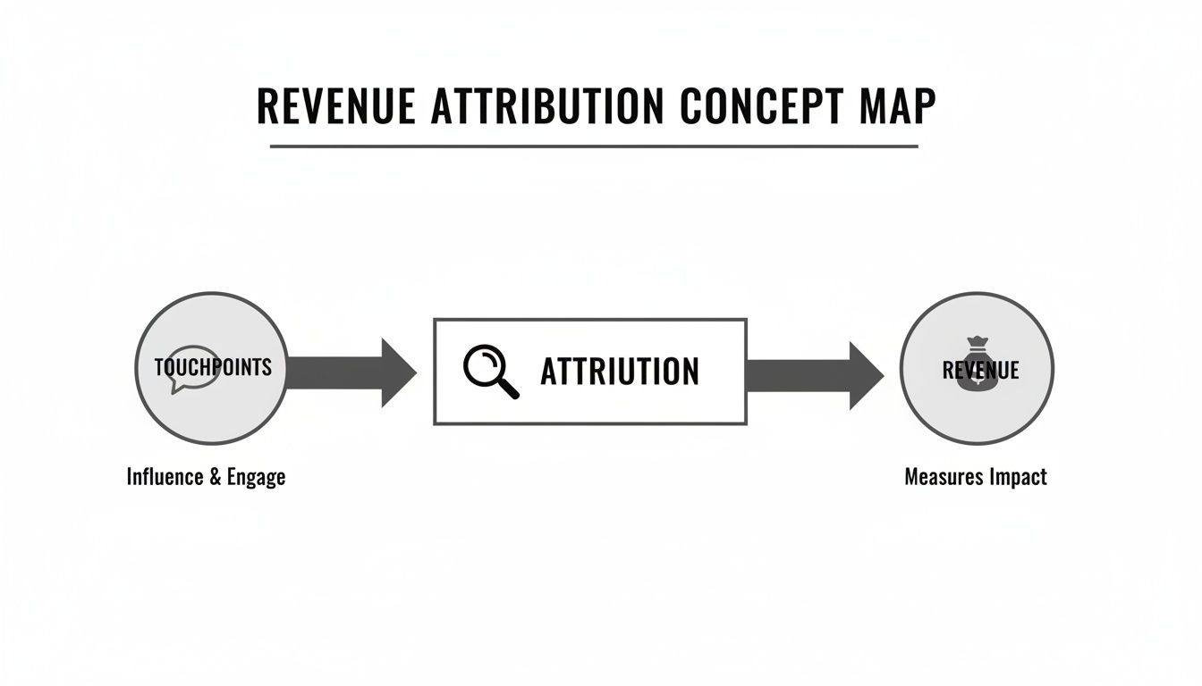 Revenue attribution is all about connecting the dots between your marketing and sales efforts and the actual money that lands in your bank account. It’s the framework you use to give credit—a specific dollar value—to every blog post, ad click, and email that helped convince a customer to buy.