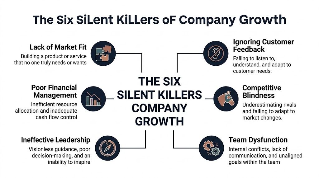 Discover why companies fail, from market need to customer neglect. Spot predictive signals in your data and use AI to prevent disaster in 2026.